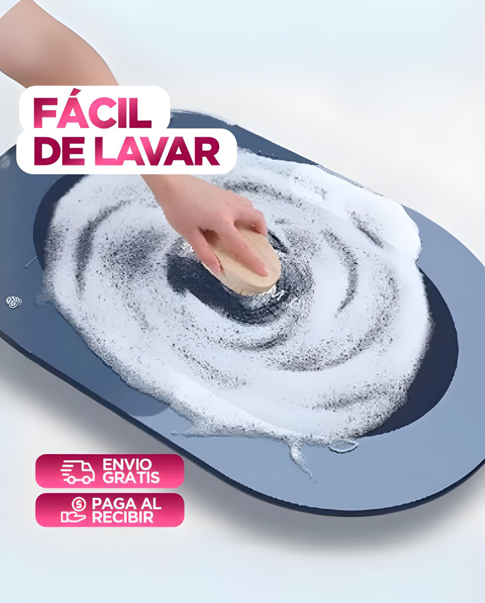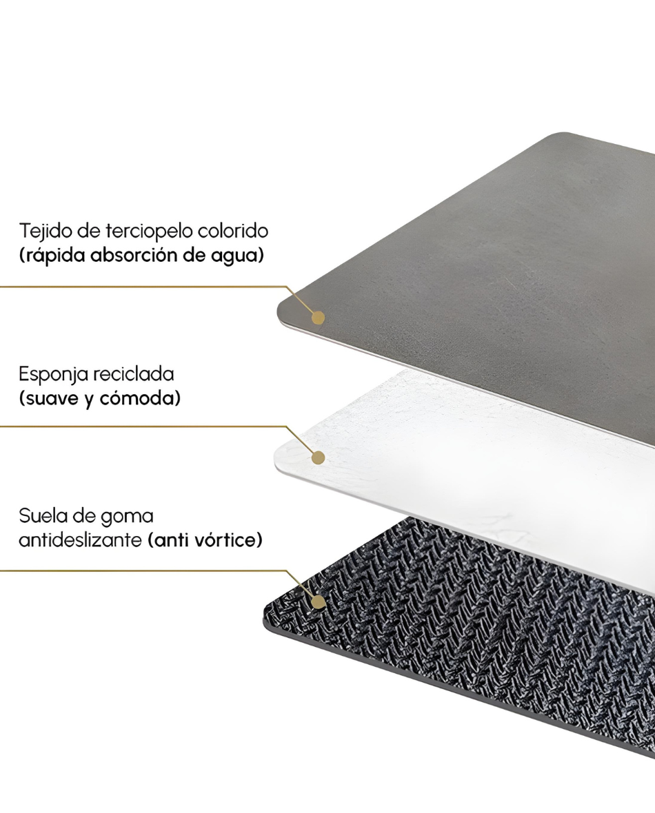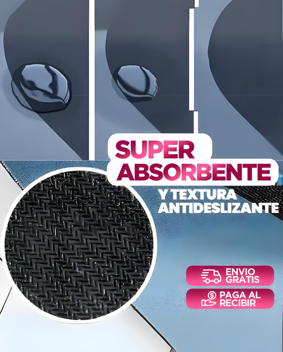 Absorbe rápidamente el agua, evitando charcos incómodos al salir de la ducha o lavar los platos.