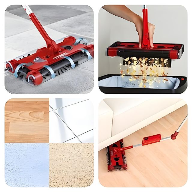 Combina el poder de limpieza de los Potentes Cepillos de Limpieza Giratoria en 360° que recogen la suciedad por los cuatro lados del cabezal de la barredora.