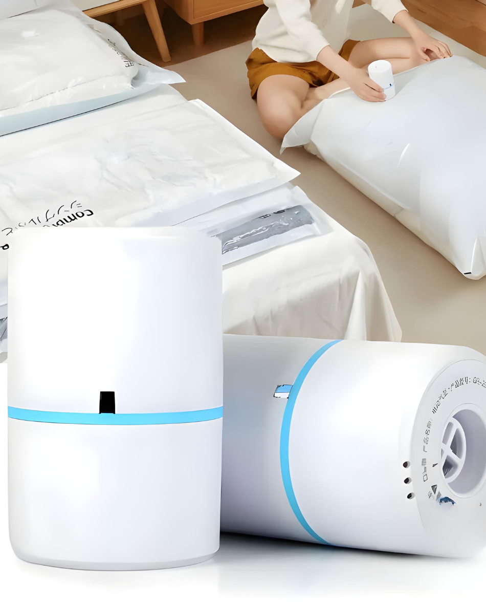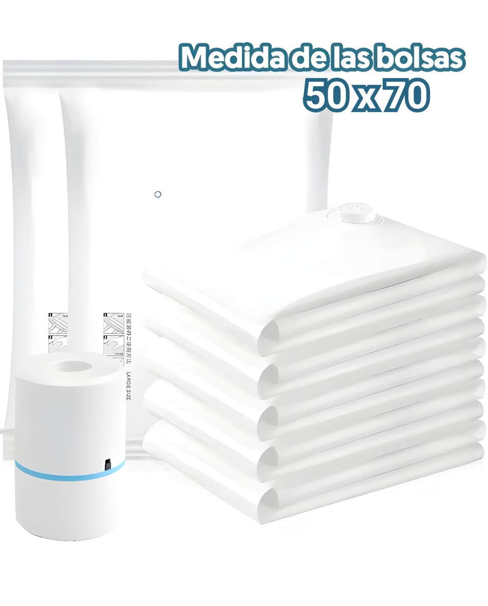 Solo guarda, sella y succiona el aire con la bomba incluida. En segundos tu ropa quedará compacta y protegida. ¡Sin esfuerzo!