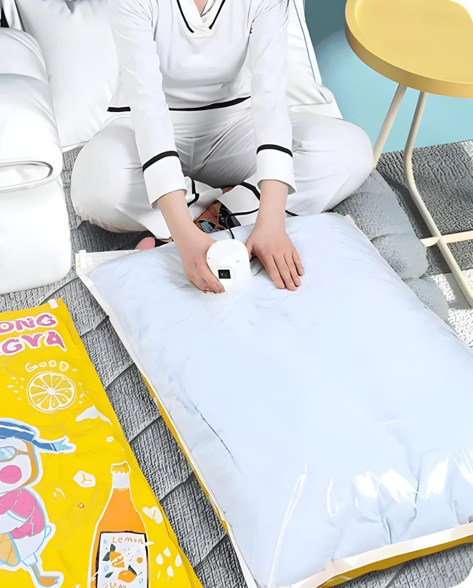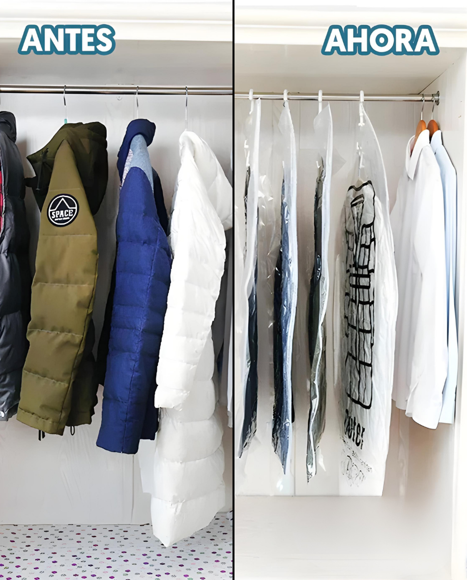 Guarda ropa de cama, chaquetas, abrigos y cojines en segundos. Ideal para cambios de temporada o closets pequeños.