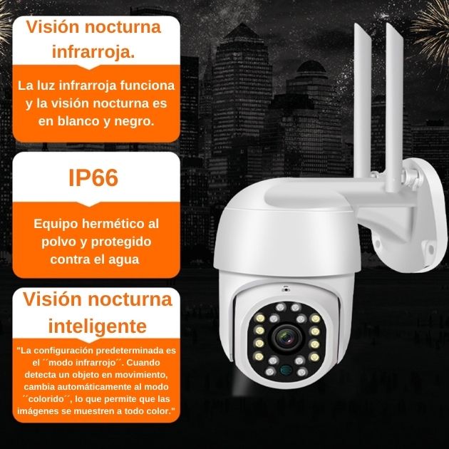 Esta cámara cuenta con un poderoso sensor de movimiento que te ayudara a dormir tranquilo, permite configurar el modo alarma, para que suene cuando detecta una persona.