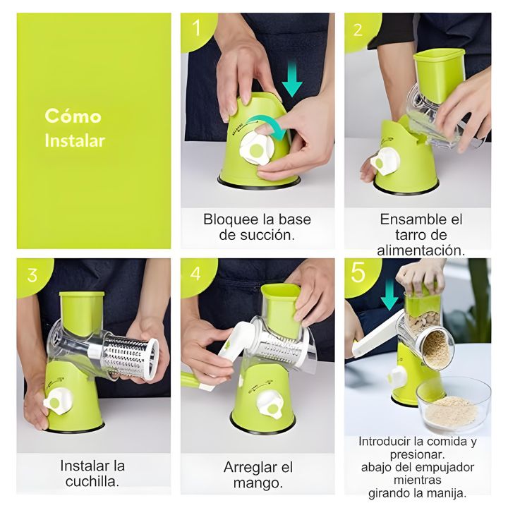 Incluye el rallador y dos utensilios esenciales para cortar y triturar. ¡Ideal para cocineros de todos los niveles! 🥕🧀🍅