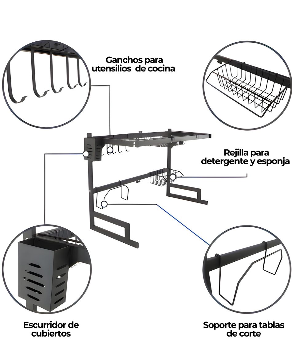 Convierte tu lavaplatos en una estación limpia, ordenada y funcional sin perforar nada. Ideal para cocinas pequeñas y familias que necesitan más espacio.