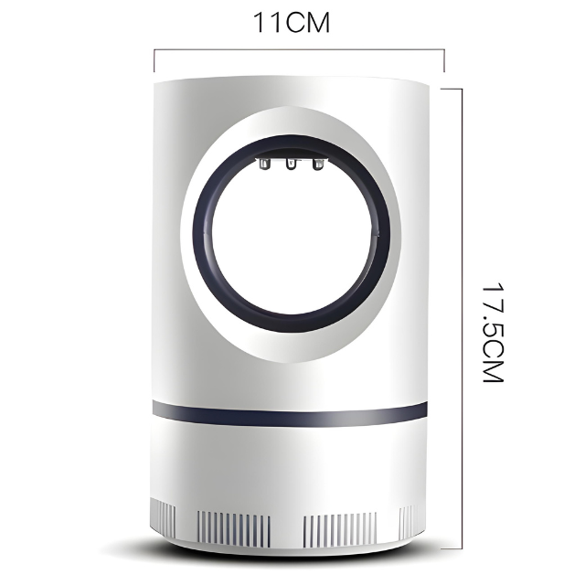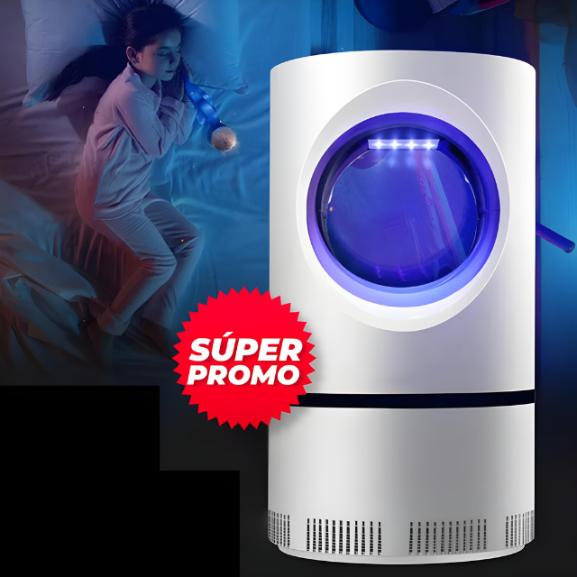 La luz LED ultravioleta atrae a los mosquitos hacia el dispositivo, donde un ventilador los succiona para eliminarlos, sin recurrir a productos químicos dañinos.