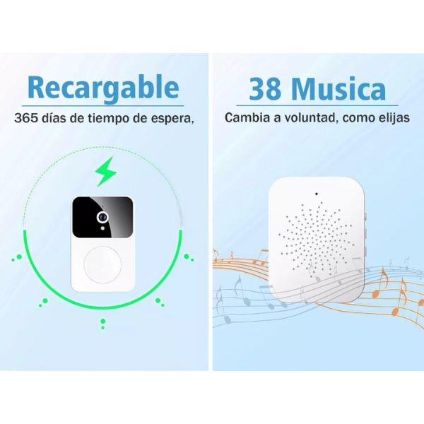 ✅ Recargable, el timbre es de fuente de alimentación USB, fácil y conveniente de usar. Se carga cada 3 meses.